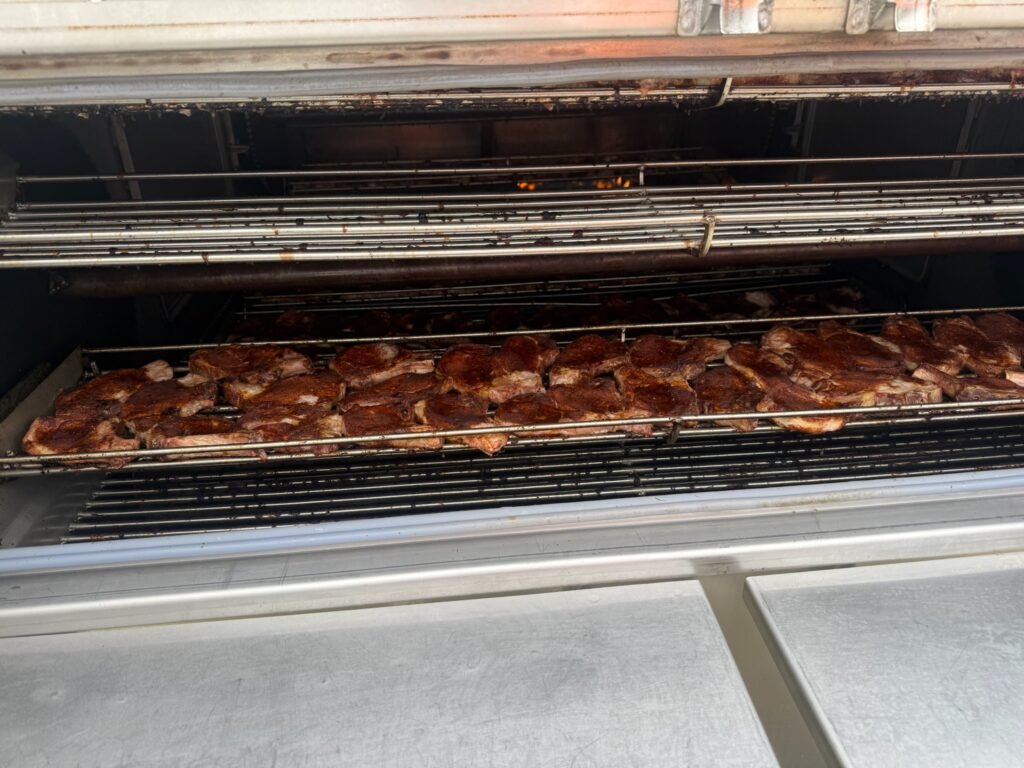 120 Pork Loins Being Cooked on a Model 600