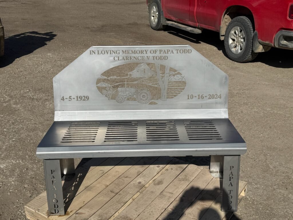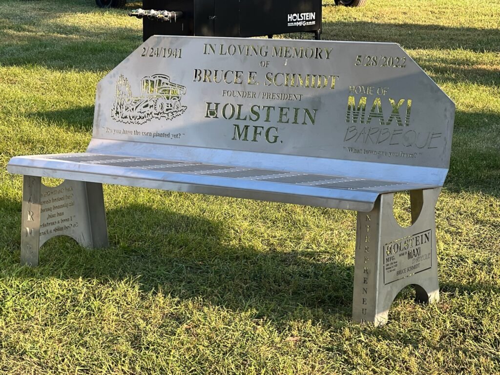 "Founder of Holstein Mfg Bruce Schmidt" Stainless Steel Memorial Bench