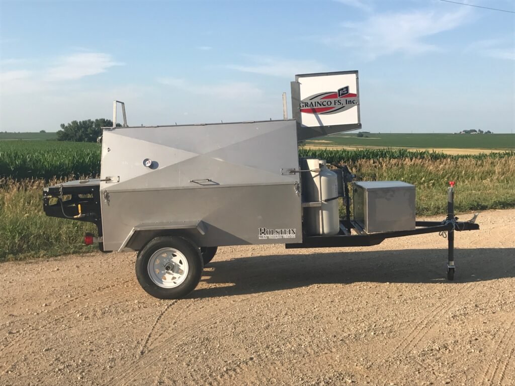 Model 7240GSS with an Extended Tongue, Stainless Steel Storage Box & "Grainco FS, Inc" Flag Style Sign