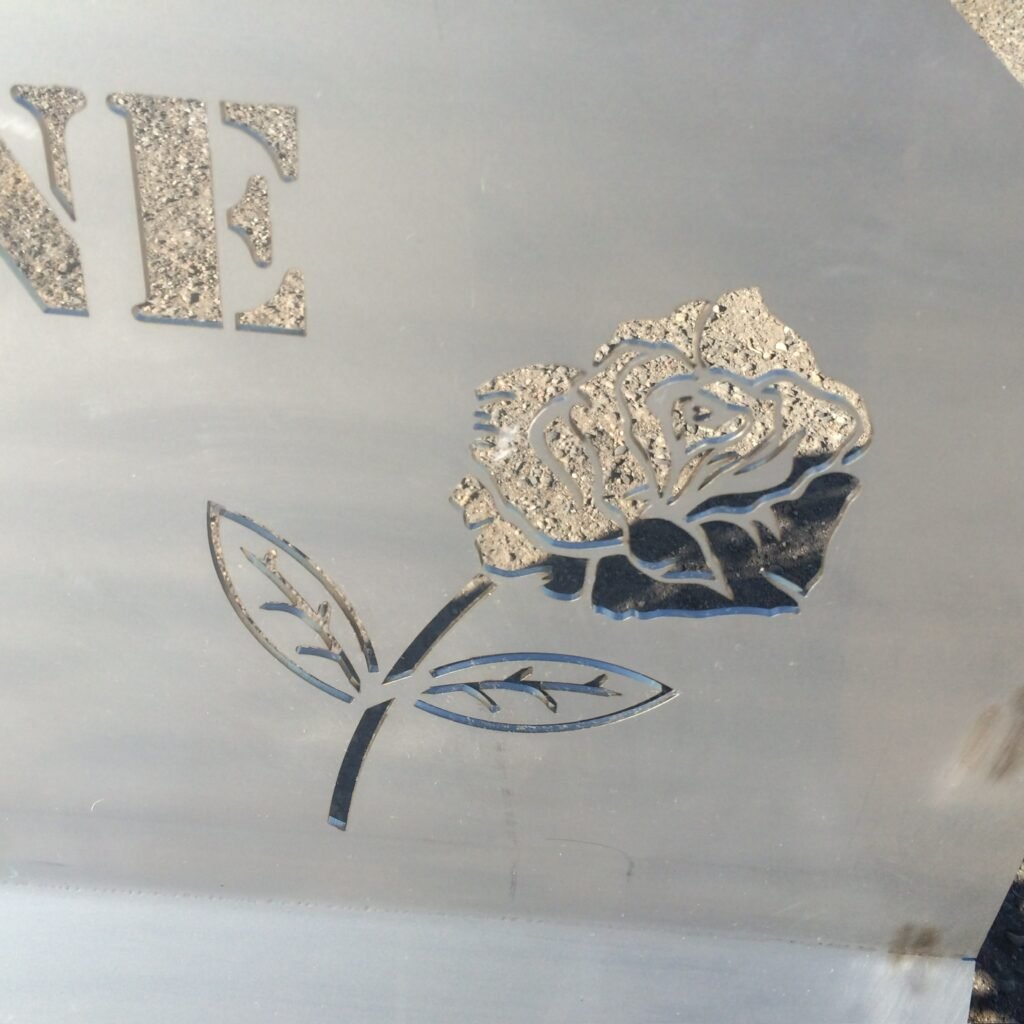 "Rose" Emblem on "Lloyd & Arlene Hardlock" Stainless Steel Memorial Bench Leg
