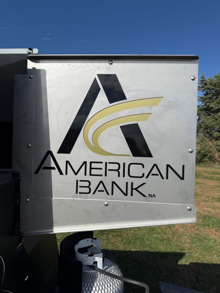 Model 7240G with Extended Tongue & Black Storage Box with "American Bank" Flag Style Sign